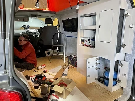 The days of old fashioned, caravan style electrical installations are happily behind us. At VanHux, we focus on the experience first, so our 12v designs are incredibly simple and robust, requiring no user intervention at all. The only parts of the system on show are the fuses and solar circuit breaker, everything else, including the battery, is hidden away safely.